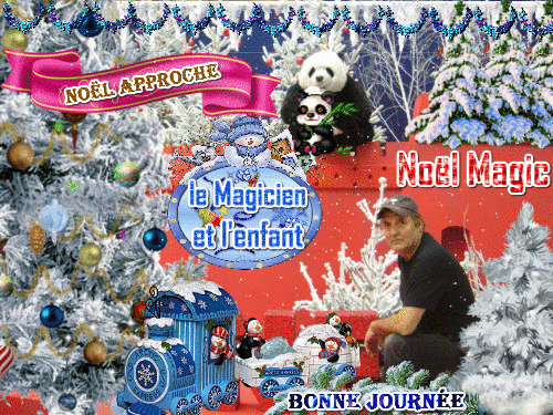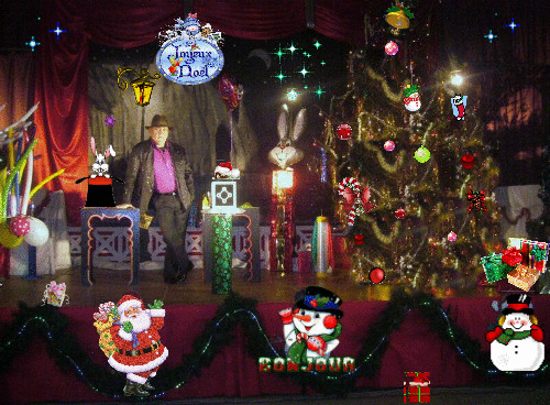 Dans un décor très coloré,un spectacle de magie avec des colombes-Lapins Angoras et plein d'autres surprises,une animation avec les enfants sur scènemes spectacles sont proposés et adapté en fonction du public-Dynamisme et rêves sont les maîtres mots de ce spectacle de Noël